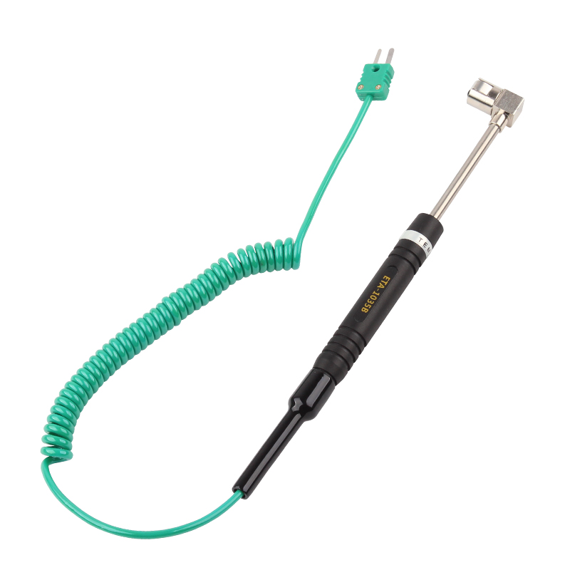 ETA1035B表面式溫度測棒適用于測量固定的物體表面,測溫端90度直角設(shè)計,方便特殊測量使用。 例如應(yīng)用于鋁或塑膠模具、紡織品、PC板、紙製品及鋼板壓鑄后的表面溫度等。