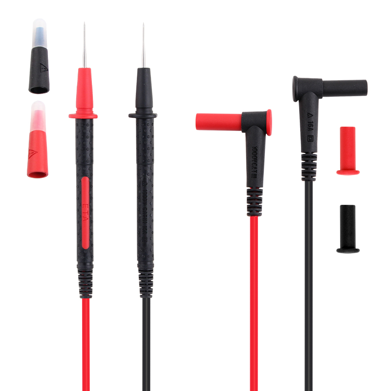 ETA4360-T 測(cè)試表筆采用特尖不銹鋼測(cè)針,具有不生銹、不易斷、不易彎、針尖硬等優(yōu)點(diǎn),棒體注塑硅膠防滑設(shè)計(jì)手感舒適,4mm標(biāo)準(zhǔn)香蕉插頭兼容市場(chǎng)上主流的國(guó)產(chǎn)及進(jìn)口萬(wàn)用表、鉗表等具有4mm插孔的儀器儀表;表筆插頭與萬(wàn)用表連接吻合緊密,插上后不易脫落,很難拔出;插拔強(qiáng)度經(jīng)過(guò)嚴(yán)格測(cè)試,采用十字花瓣結(jié)構(gòu),導(dǎo)通和可靠性優(yōu)良,擁有強(qiáng)勁的超過(guò)載電流能力。