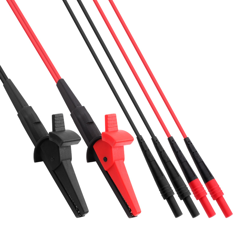 當(dāng)被測(cè)電阻值小于幾歐,測(cè)試引線的電阻和探針與測(cè)試點(diǎn)的接觸電阻與被測(cè)電阻相比已不能忽略不計(jì)時(shí),若仍采用兩線測(cè)試方法必將導(dǎo)致測(cè)試誤差增大。此時(shí)可采用開(kāi)爾文連接方式(或稱四線測(cè)試方式)來(lái)進(jìn)行測(cè)試,ETA4552而采用開(kāi)爾文法四線檢測(cè),開(kāi)爾文夾子,半部分鉗口彼此絕緣,鱷魚(yú)夾的連接,提供了更大的開(kāi)口,加粗的導(dǎo)線,也滿足大電流的通過(guò)。4mm標(biāo)準(zhǔn)香蕉插頭可以用在具有4線電阻測(cè)量功能的儀器如:微歐姆表、臺(tái)式萬(wàn)用表、電池內(nèi)阻測(cè)試儀等,能在生產(chǎn)線、驗(yàn)收檢測(cè)等各種現(xiàn)場(chǎng)輕松使用。