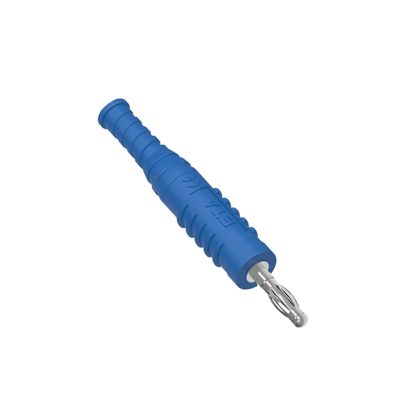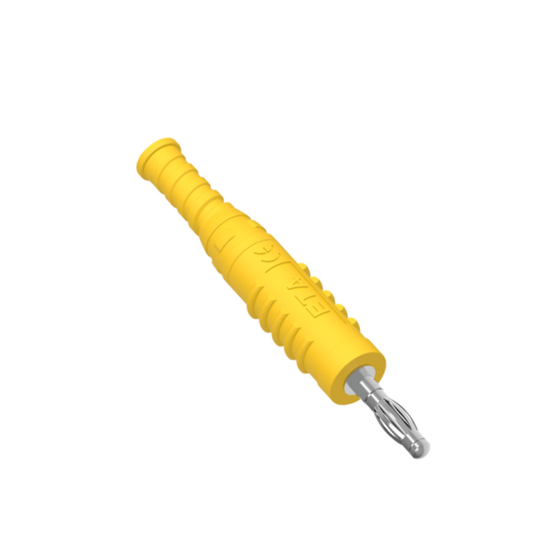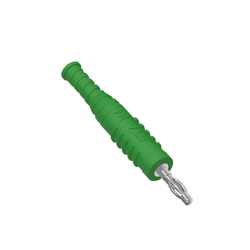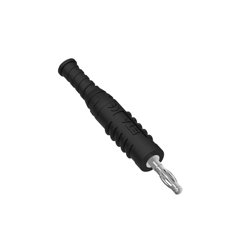 ETA3002A直插香蕉插頭,鍍鎳黃銅主體, 帶TPU彈性絕緣套管,免焊螺釘連接,接受截面最大直徑為4.0mm的電纜。