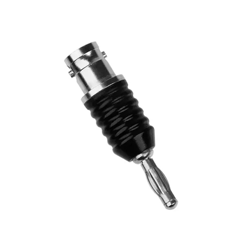 4mm轉(zhuǎn)接插頭,BNC母頭轉(zhuǎn)香蕉插頭,插頭為4mm公香蕉插頭,尾部支持BNC公連接器。