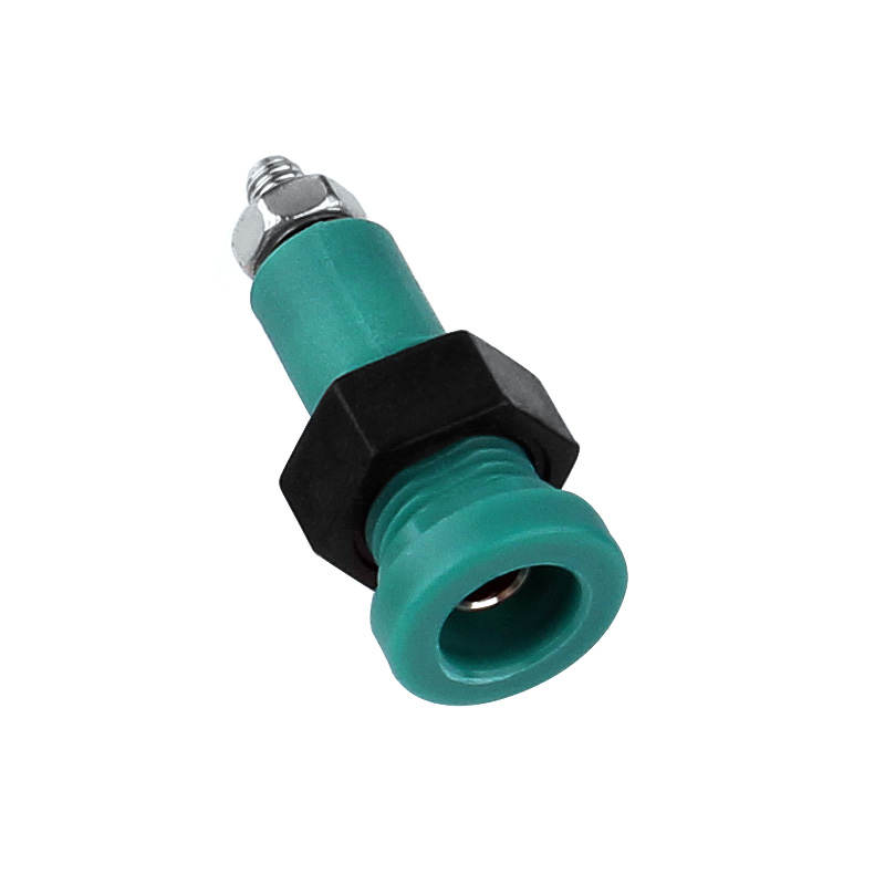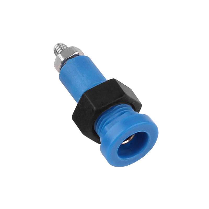 純銅鍍鎳嵌入式3mm輸入端子,采用螺帽直接在面板進行固定,耐高溫尼龍塑料,尾端可使用冷壓端子連接。